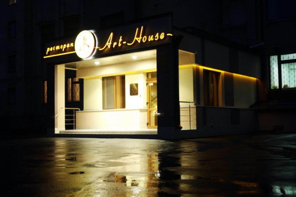 "Art-House" - это ресторан в котором объединены стиль и уютная атмосфера. Интерьер заведения выполнен в светлых тонах теплых оттенков что придает ощущение шарма и комфорта.
