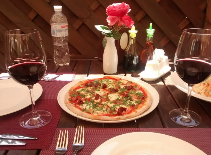 чудове обслуговування, дуже швидко виносили замовлення, офіціант знала добре меню. Дуже смачна, пряна з вогником солянка, тонка соковита піца і прекрасна легка закуска з баклажанів і сиру моцарела. Дуже сподобалося домашнє вино в карафах. У закладі є затишна літня тераса з вентиляторами над головою.