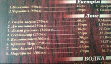 Замовили 2 порції шашлику по 250грамм. Принесли 3 шматка смаженого сала, а решта взагалі проживати не можливо було. Одні жили. М'ясо взагалі обрізки якісь. Типу для гуляшу. У разом сказали зроблять знижку 10%, яка у них зараз для всіх відвідувачів. Пішли голодними і обдуреними. Вам вирішувати де залишити Ваші гроші